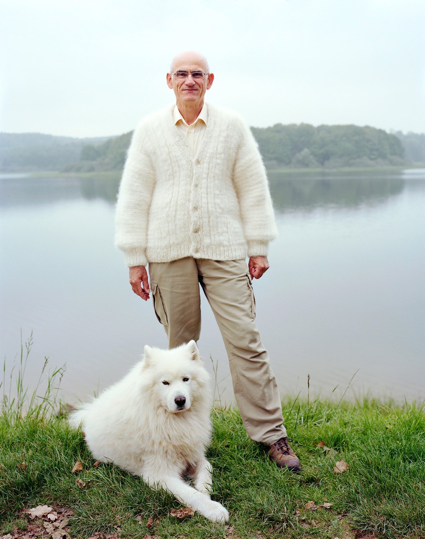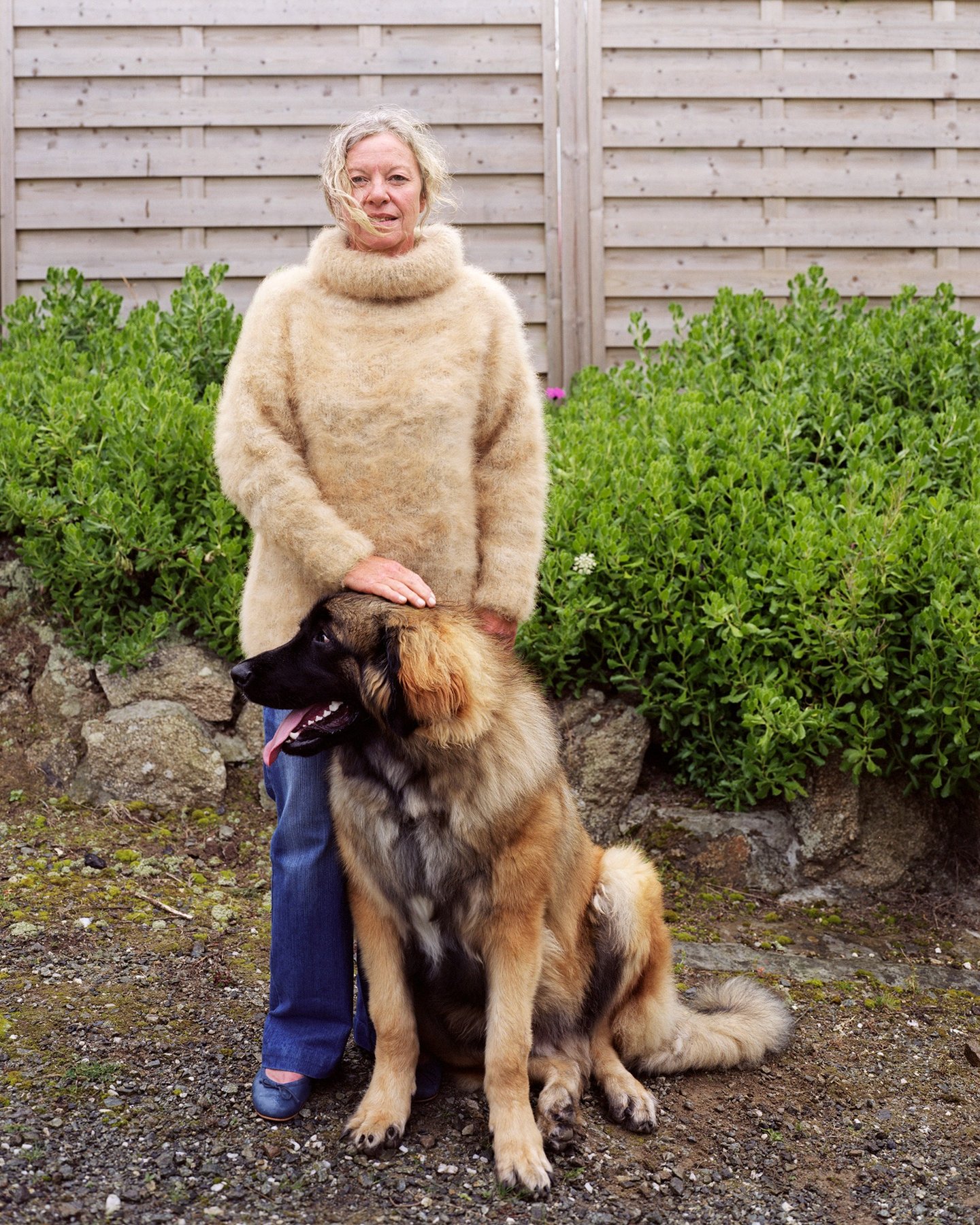 Les portraits de la série Dogwool sont liés par l'amour inconditionnel de ces maitres pour leurs chiens. Ils aiment tellement leur animal q’ils le portent tricoté. Sur ces races de chiens au sous-poil isolant, épais et duveteux, brossage après brossage, ce poil particulier est patiemment collecté et stocké. Après quelques années, la précieuse récolte est enfin envoyée à Doumé Jalat-Dehen qui file traditionnellement le poil, au rouet. Retour à l’envoyeur sous forme de pelotes de 50 g aussi douces que l’angora. Le fil de chien se tricotera avec de grosses aiguilles.