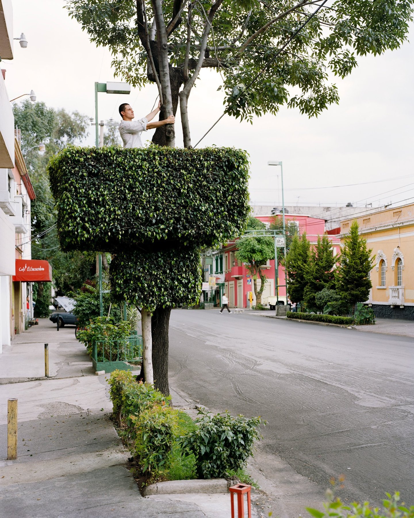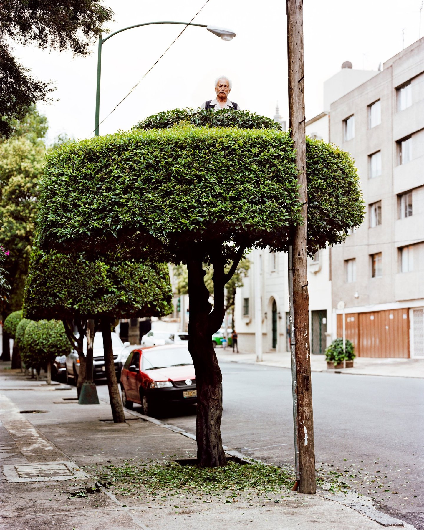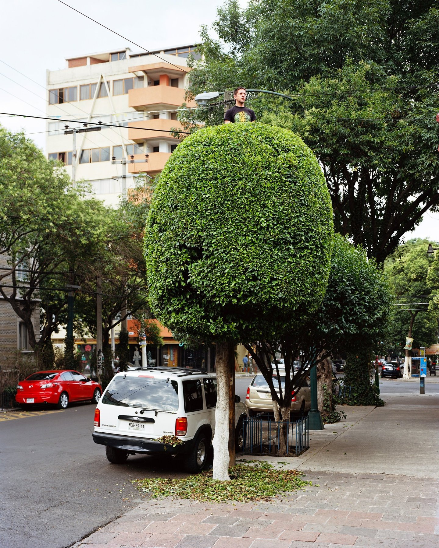 Sentinelles perchées semblant observer et toiser le passant. Arbres taillés devenant tours de guet, miradors, dressés ça et là au gré des rues. La Lumière est douce, les feuilles éparses. Une poésie urbaine se matérialise au travers de créations originales. Tout commence par la rencontre fortuite d'un jardinier et d'une soucoupe volante, suivi d'un casting d'arbre sur street view. Erwan Fichou sélectionne ses sujets, ses décors et y insère des modèles. Mexico, dans sa démesure, véritable « bête humaine » est aussi un lieu où l'artiste trouve un terrain de jeu à sa mesure. Ces îlots de verdure éveillent l'imagination et invitent à l'évasion. Respiration, parenthèse paisible au sein de cette mégalopole en permanente effervescence. La réalisation fut, selon lui, « chaotique » par ses imprévus et ses rendez-vous manqués avec les jardiniers, les modèles ou les passants invités à grimper, tout comme les rendez-vous innopinés avec les forces de l'ordre locales. Chaos ordonné. La ville est un espace de contrôle où la nature est modelée et structurée par l'homme qui s'approprie l'espace. Le photographe insiste sur l'aspect biologique de ce territoire. Son travail n'est pas seulement artistique, mais s'inscrit dans une réflexion plus vaste. L'espace urbain n'est pas simplement un décor. Comme Erwan Fichou le souligne, « il catalyse des envies, des idées, des pensées voire des pratiques, à résonance irrémédiablement sociales et politiques ». Finalement ce n'est guère l'action photographique qui importe mais bien cette habilité qu'a l'image de susciter des réactions. Réactions conditionnées par un vécu, un système de représentations propre à chaque individu, qui fait que chacun de nous projette autour de l'œuvre un cadre et surtout des limites qui construisent alors une réalité que l'on peut légitimement qualifier d'intime. « Notre sensibilité contemporaine nous prédispose à la prophétie et non à l'histoire, nous vivons dans un monde d'images qui précèdent la réalité, nous ne cherchons pas la vision, sinon le déjà-vu 1 ». Cécile Lapouge.