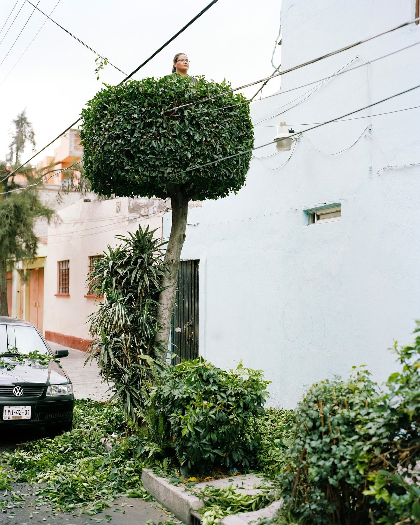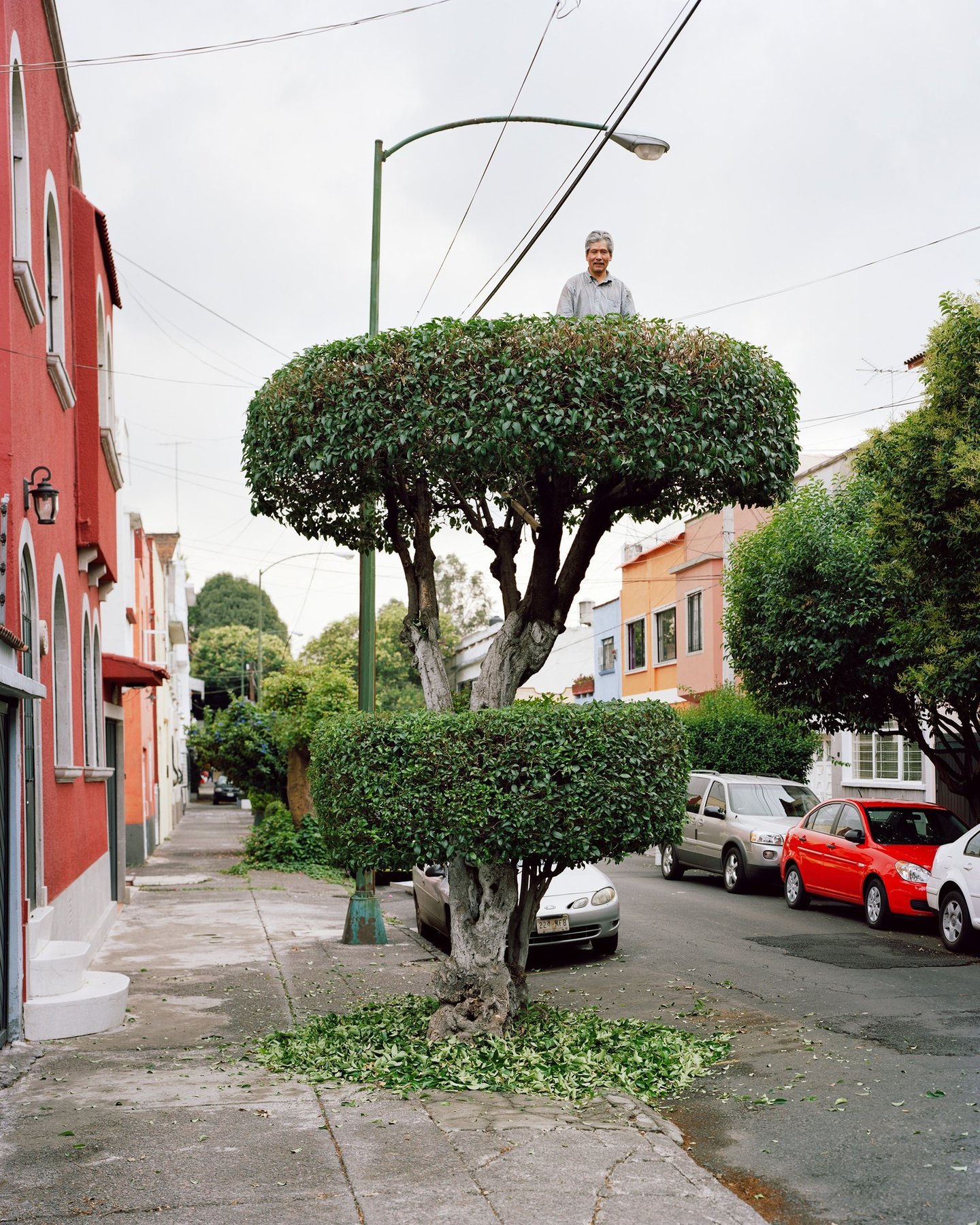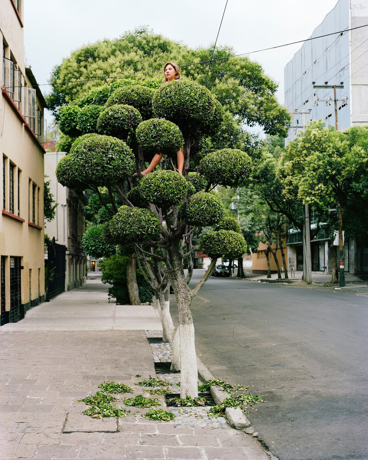 Sentinelles perchées semblant observer et toiser le passant. Arbres taillés devenant tours de guet, miradors, dressés ça et là au gré des rues. La Lumière est douce, les feuilles éparses. Une poésie urbaine se matérialise au travers de créations originales. Tout commence par la rencontre fortuite d'un jardinier et d'une soucoupe volante, suivi d'un casting d'arbre sur street view. Erwan Fichou sélectionne ses sujets, ses décors et y insère des modèles. Mexico, dans sa démesure, véritable « bête humaine » est aussi un lieu où l'artiste trouve un terrain de jeu à sa mesure. Ces îlots de verdure éveillent l'imagination et invitent à l'évasion. Respiration, parenthèse paisible au sein de cette mégalopole en permanente effervescence. La réalisation fut, selon lui, « chaotique » par ses imprévus et ses rendez-vous manqués avec les jardiniers, les modèles ou les passants invités à grimper, tout comme les rendez-vous innopinés avec les forces de l'ordre locales. Chaos ordonné. La ville est un espace de contrôle où la nature est modelée et structurée par l'homme qui s'approprie l'espace. Le photographe insiste sur l'aspect biologique de ce territoire. Son travail n'est pas seulement artistique, mais s'inscrit dans une réflexion plus vaste. L'espace urbain n'est pas simplement un décor. Comme Erwan Fichou le souligne, « il catalyse des envies, des idées, des pensées voire des pratiques, à résonance irrémédiablement sociales et politiques ». Finalement ce n'est guère l'action photographique qui importe mais bien cette habilité qu'a l'image de susciter des réactions. Réactions conditionnées par un vécu, un système de représentations propre à chaque individu, qui fait que chacun de nous projette autour de l'œuvre un cadre et surtout des limites qui construisent alors une réalité que l'on peut légitimement qualifier d'intime. « Notre sensibilité contemporaine nous prédispose à la prophétie et non à l'histoire, nous vivons dans un monde d'images qui précèdent la réalité, nous ne cherchons pas la vision, sinon le déjà-vu 1 ». Cécile Lapouge.